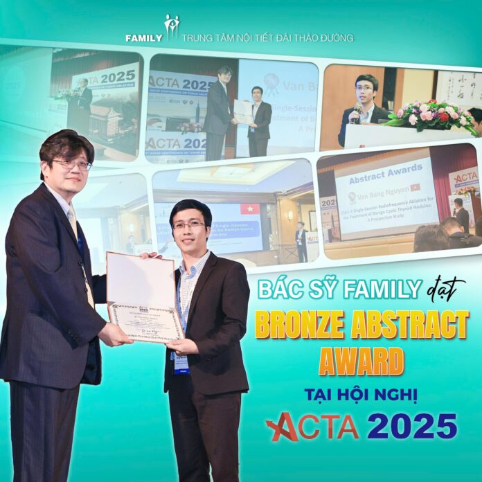 Lần thứ ba góp mặt tại Hội nghị Đốt khối u bằng nhiệt Châu Á – Thái Bình Dương (ACTA 2025) diễn ra tại Đài Bắc, Đài Loan trong hai ngày 25–27/10, ThS. BS. Nguyễn Văn Bằng, Trung tâm Nội tiết Đái tháo đường FAMILY, đã được trao “Bronze Abstract Award” – Giải thưởng Đồng dành cho Báo cáo khoa học xuất sắc.