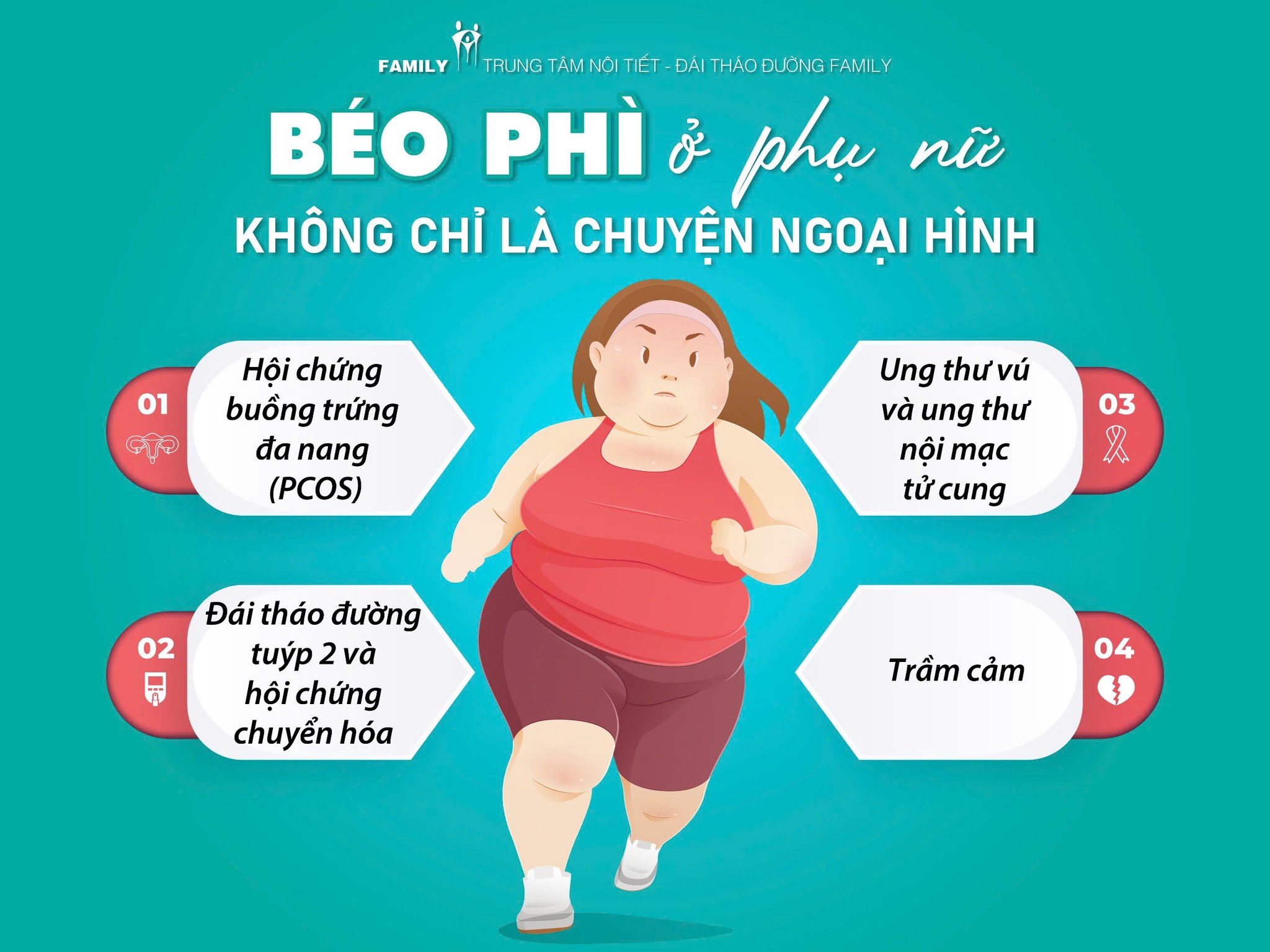 Béo phì không chỉ là câu chuyện về cân nặng hay ngoại hình. Với phụ nữ, nó còn là một vấn đề sức khỏe tổng thể, liên quan đến nhiều rối loạn tiềm ẩn.